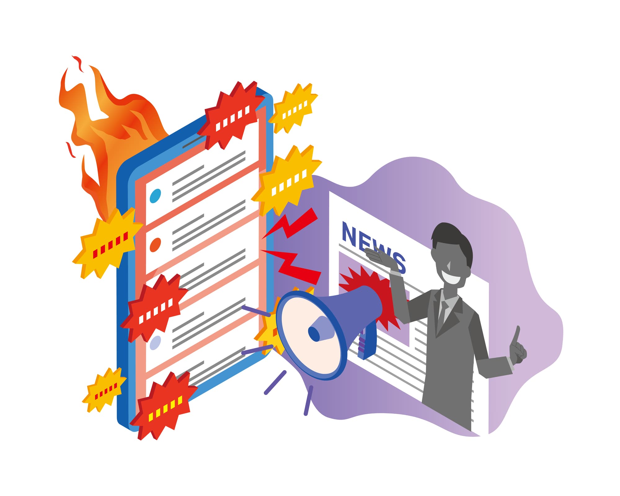 「炎上」とは、インターネットやSNS上に投稿された言動やコンテンツが、多くのユーザーから批判や非難を受け、急速に拡散・注目される状態を指します。SNSや掲示板、ニュースサイトのコメント欄などで集中的に攻撃を受けることで、企業や発信者の信用が損なわれる場合もあります。