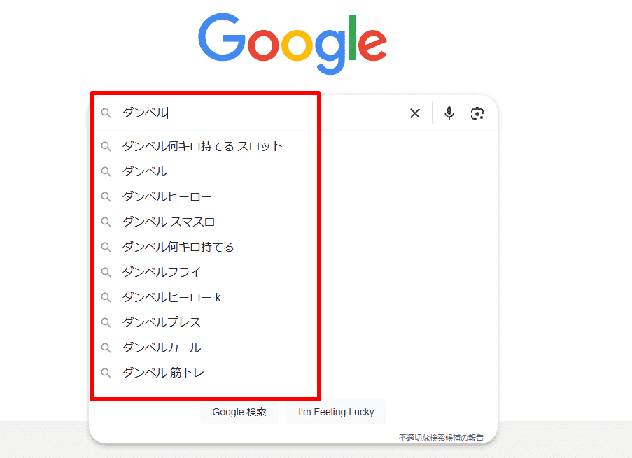 Googleサジェストの表示例▼