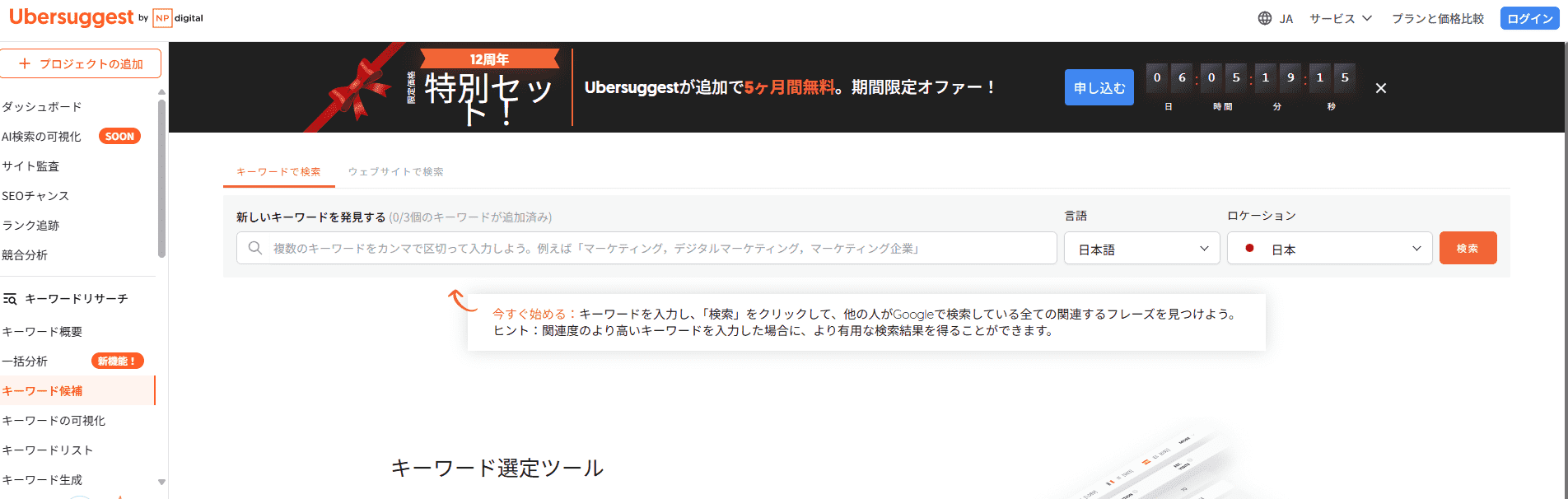 無料版でも1日に数回まで検索可能で、有料版ではより多くのキーワードや詳細データを取得できます。サジェスト対策においては、現状のサジェストキーワードの把握だけでなく、そのキーワードの検索需要や競合状況を同時に確認できる点が大きなメリットです。