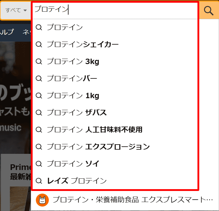 Amazonサジェストの表示例▼